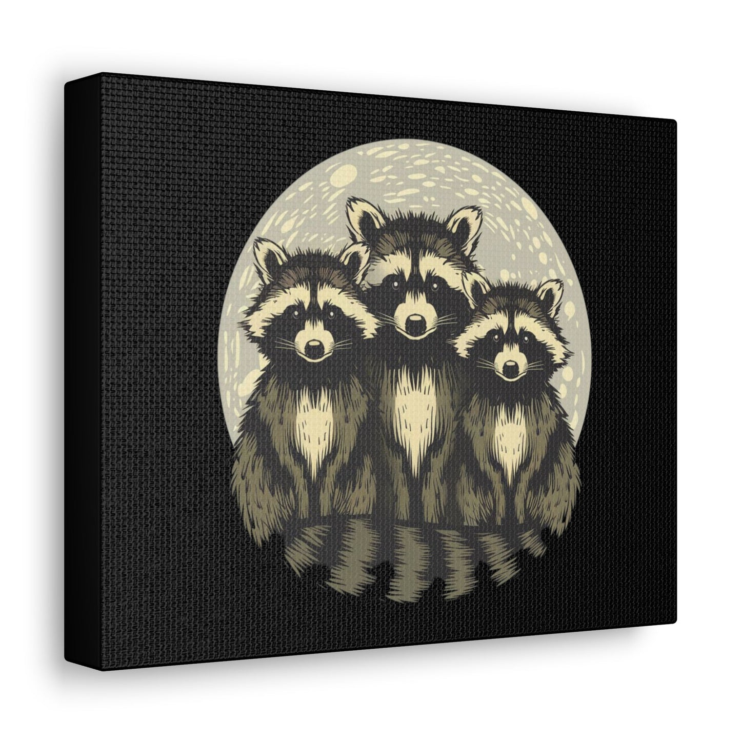 3 Raccoons in the Moonlight Canvas Wall Art