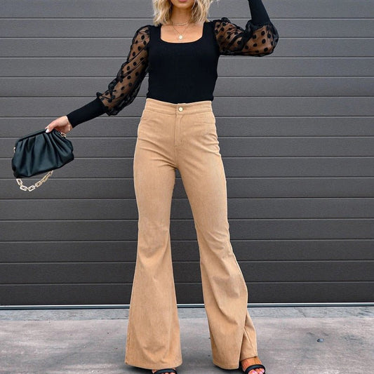 Corduroy Trousers Fashion Mid Waist Micro Flared Pants