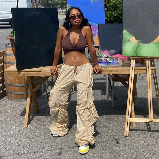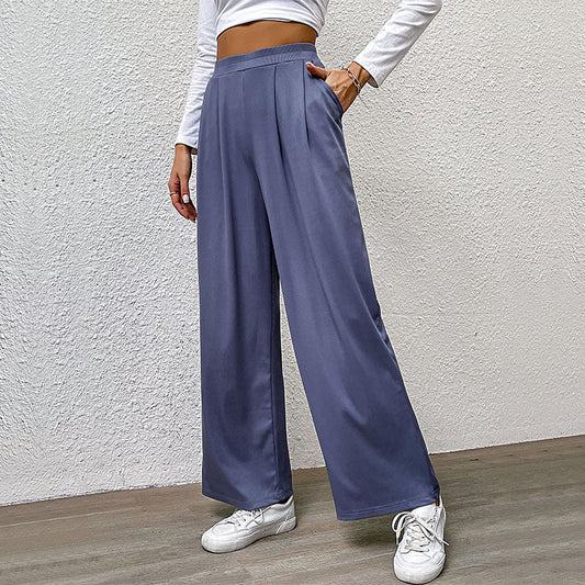 Loose Cotton Wide-Leg Pants with Elastic Waistband and Pockets