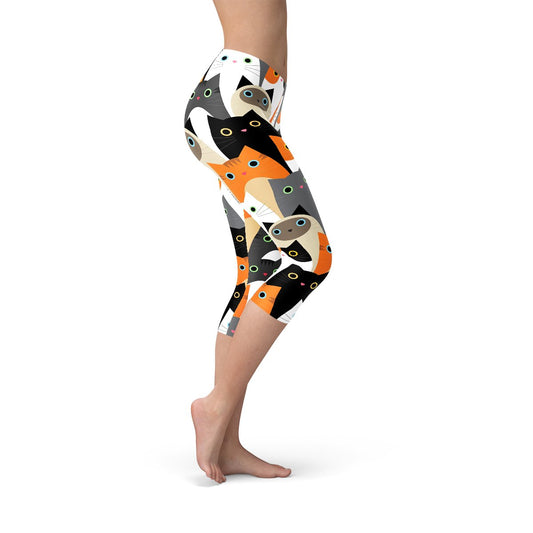 Womens All Over Print Cats Capri Leggings