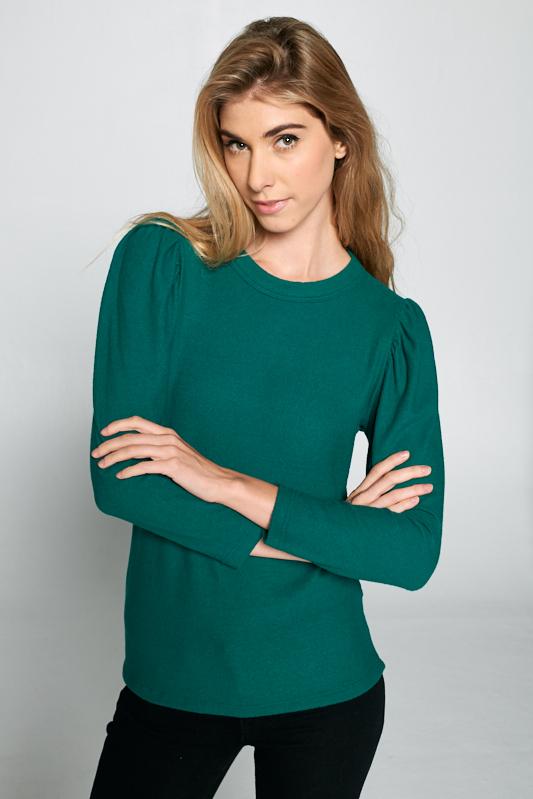Extra Soft Green Scoop Neck Puff Sleeve Top